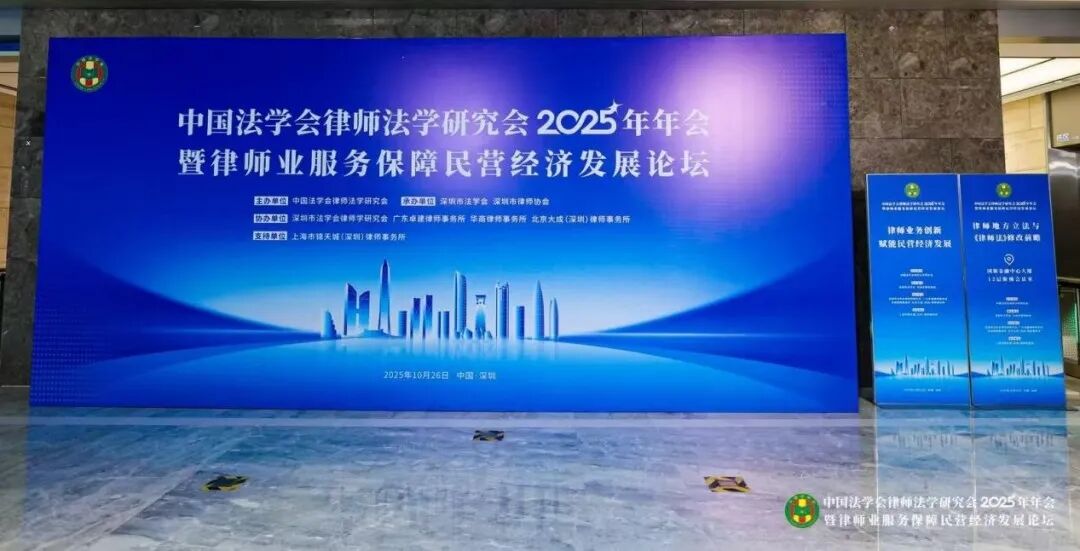 2025年10月26日,由中国法学会律师法学研究会主办的“2025年年会暨律师服务保障民营经济发展论坛”在深圳市国银中心大厦顺利召开!