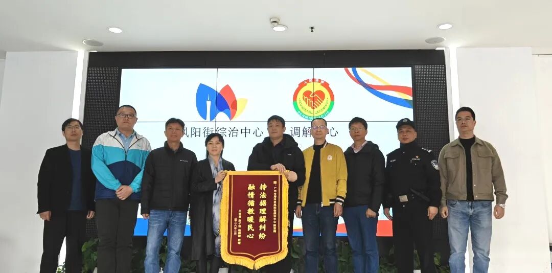 2026年2月9日上午,我所高级合伙人杨毅斌律师与当事人王会喜等人先后来到海珠区凤阳街综治中心、调解中心和凤阳街派出所,分别向综治中心、调解中心陈雪梅主任和派出所李盛会警官敬送两面锦旗,对他们以民为本、以法为据、情理相融的方式解决矛盾纠纷的行为,表达最真诚的感谢。