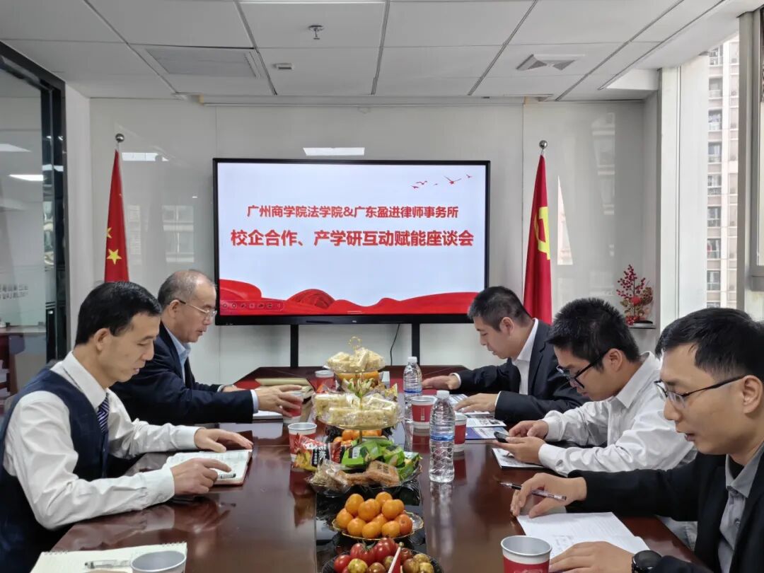 接着,到场人员移步至会议室召开广东盈进律师事务所与广州商学院法学院实践教学基地揭牌仪式和校企共建、互动赋能座谈会。