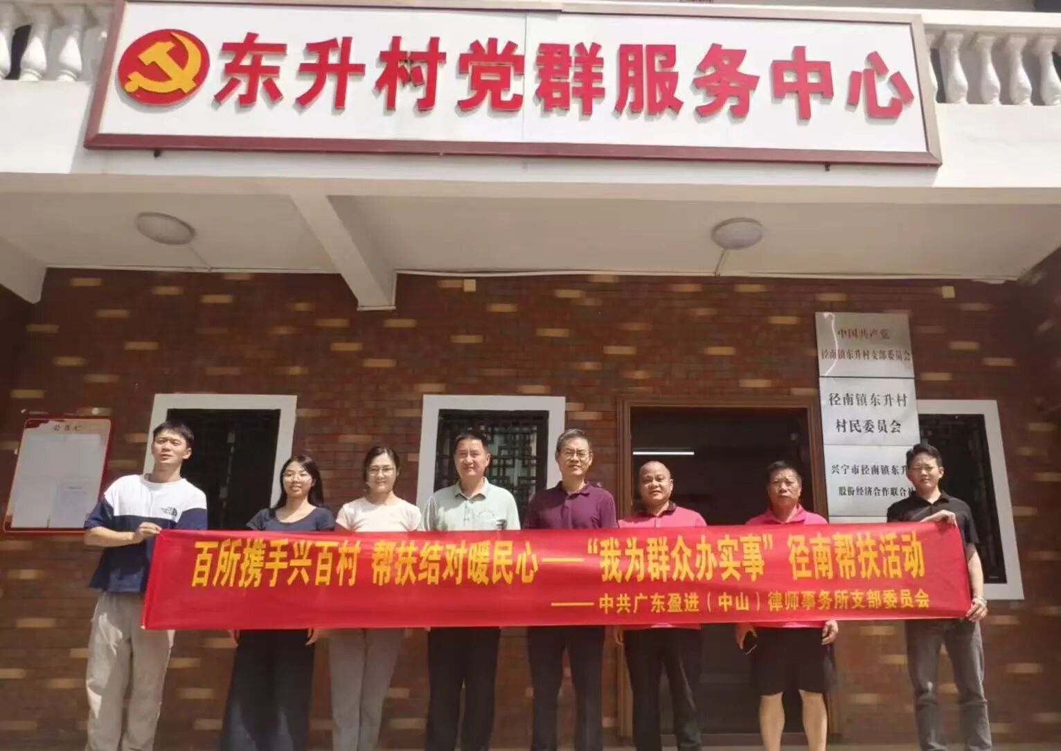 2025年5月,市律师行业第四轮“我为群众办实事·百所兴百村”活动号角吹响,盈进(中山)党支部迅速响应,组建帮扶小组前往径南镇东升村走访调研,就此与东升村开启了乡村振兴结对共建篇章。