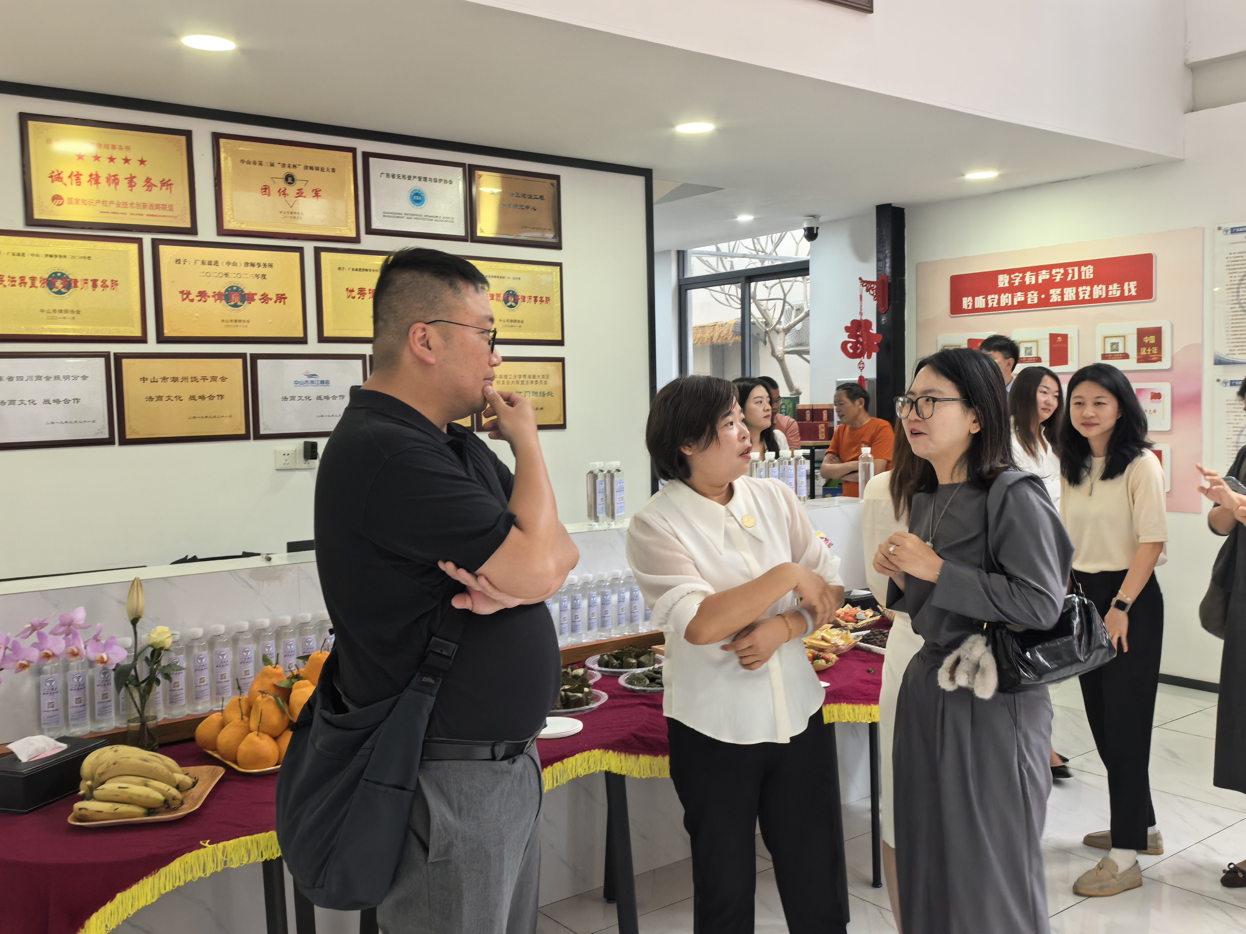 随后,盈进高伙们引领嘉宾参观律所荣誉墙、党建长廊及智能化办公区,展示盈进在专业化建设、党建引领与数字化转型中的创新实践。嘉宾们对盈进“以党建促所建、以专业赢口碑”的发展模式给予高度评价。