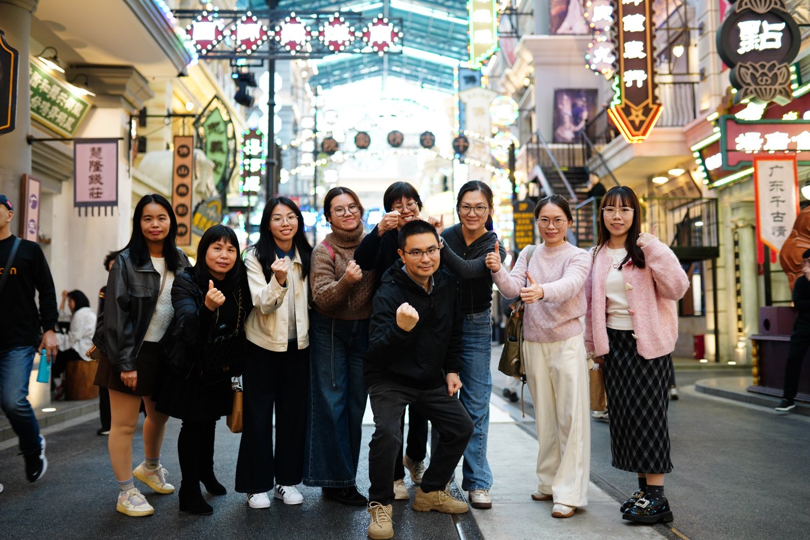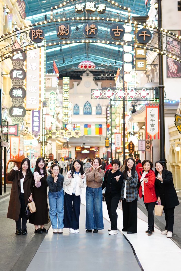午后时分,盈进团队抵达景区集体观演大型演艺《千古情》。感受岭南文化千年流转,沉醉于文明魅力。在风情穿越街,古色古香的建筑与热闹的市井表演相映成趣,同事们或驻足欣赏民间艺人的绝活,或加入巡游队伍互动嬉戏,定格美好瞬间。